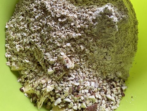 Na tu jsem si dopředu do mísy rozkrájel jedno celé máslo (samozřejmě půlka zbyde na příště). Pak jsem přidal všechny ostatní ingredience a vymačkal skvělou drobenku.
